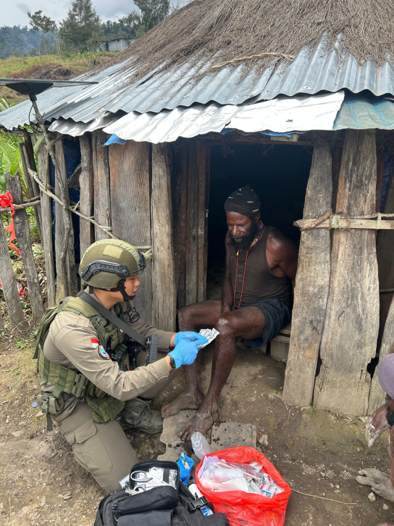 Puncak – Di tengah medan pegunungan Papua yang sulit dijangkau, personel Satgas Operasi Damai Cartenz 2026 turun langsung menyusuri permukiman warga di Distrik Sinak, Kabupaten Puncak, Selasa (27/1/2026). Tidak hanya berpatroli menjaga keamanan, mereka juga membuka layanan pengobatan keliling bagi masyarakat setempat.